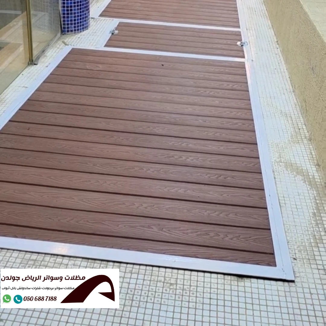 تُعد أغطية المسابح بديل الخشب المتحركة من أحدث الحلول العصرية التي تجمع بين الأناقة، الأمان، والعملية في تصميم المسابح. فهي تمنح المسبح مظهر الخشب الطبيعي الفاخر، مع مزايا تقنية حديثة تسمح بفتح وإغلاق الغطاء بسهولة تامة، مما يوفّر حماية إضافية للمسبح ويحافظ على نظافته. تم تصنيع هذه الأغطية باستخدام ألواح بديل الخشب عالية الجودة المثبتة على هيكل معدني قوي، مع نظام حركة انزلاقي يتيح استخدام المسبح أو تغطيته في أي وقت حسب الحاجة.
